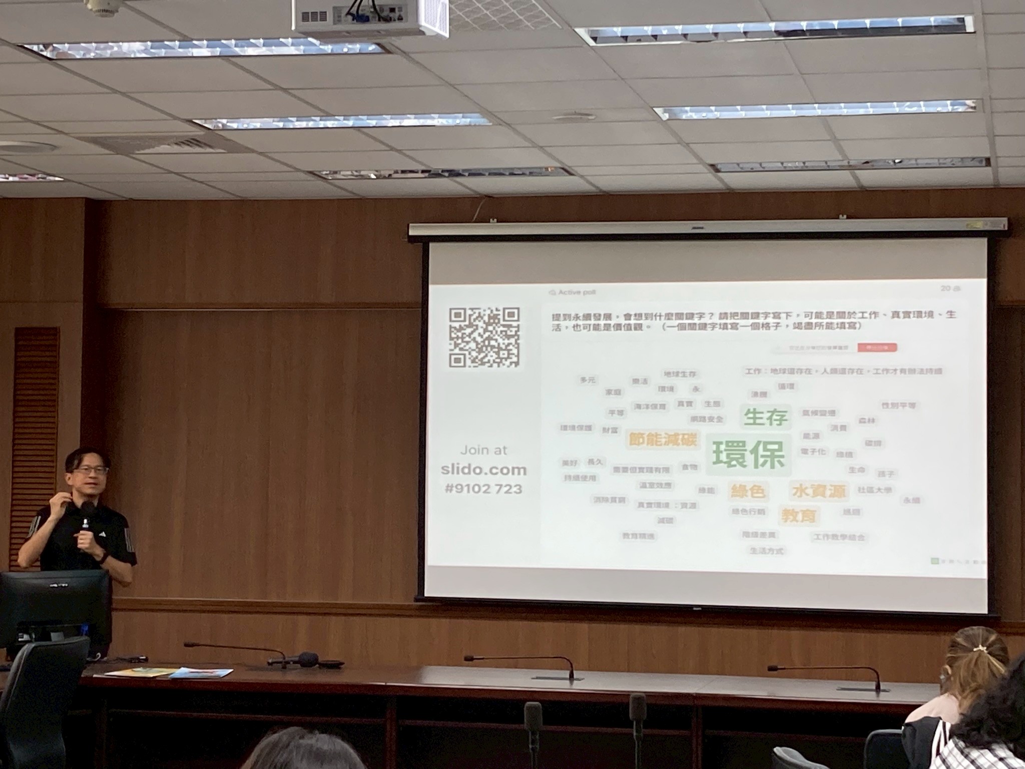 第二場次主題為「為永續未來而教:校準社大課程融滲永續發展思維」,著重於課程設計與教學應用。講師以實際案例示範如何將永續理念轉化為課程內容,協助教師從課程目標設定、教學活動設計到學習成果評估,建構具體可行的永續教學模式。