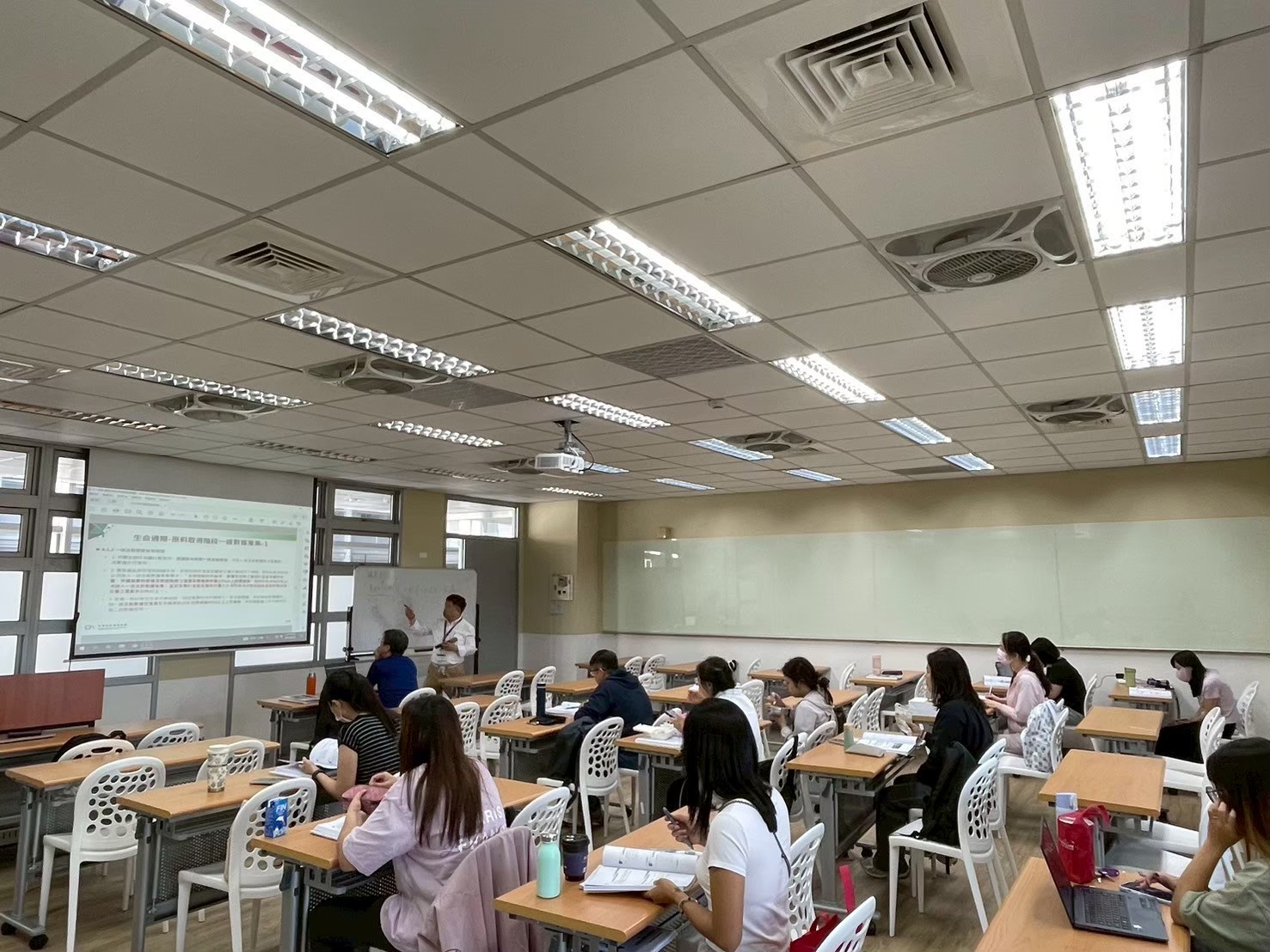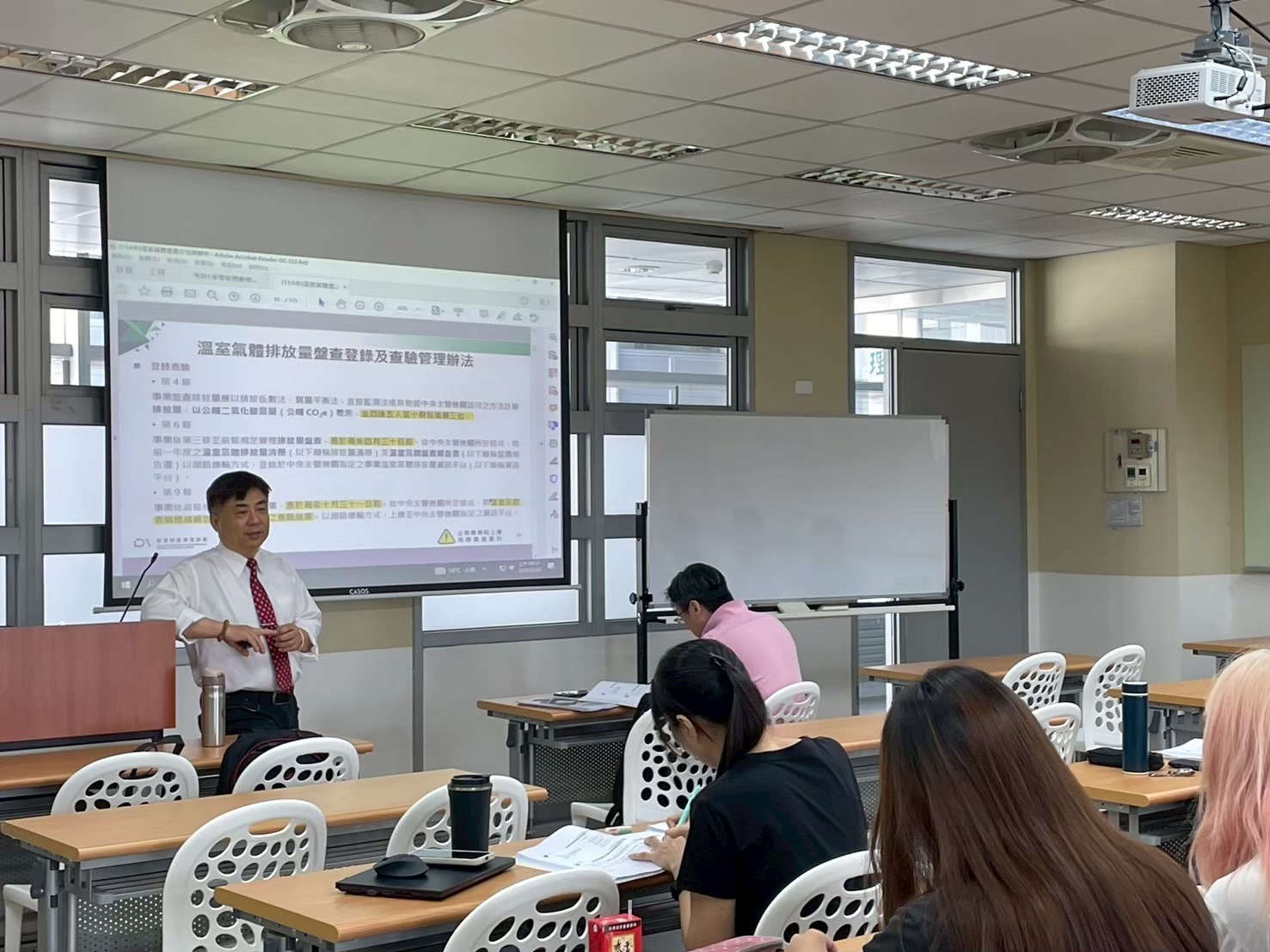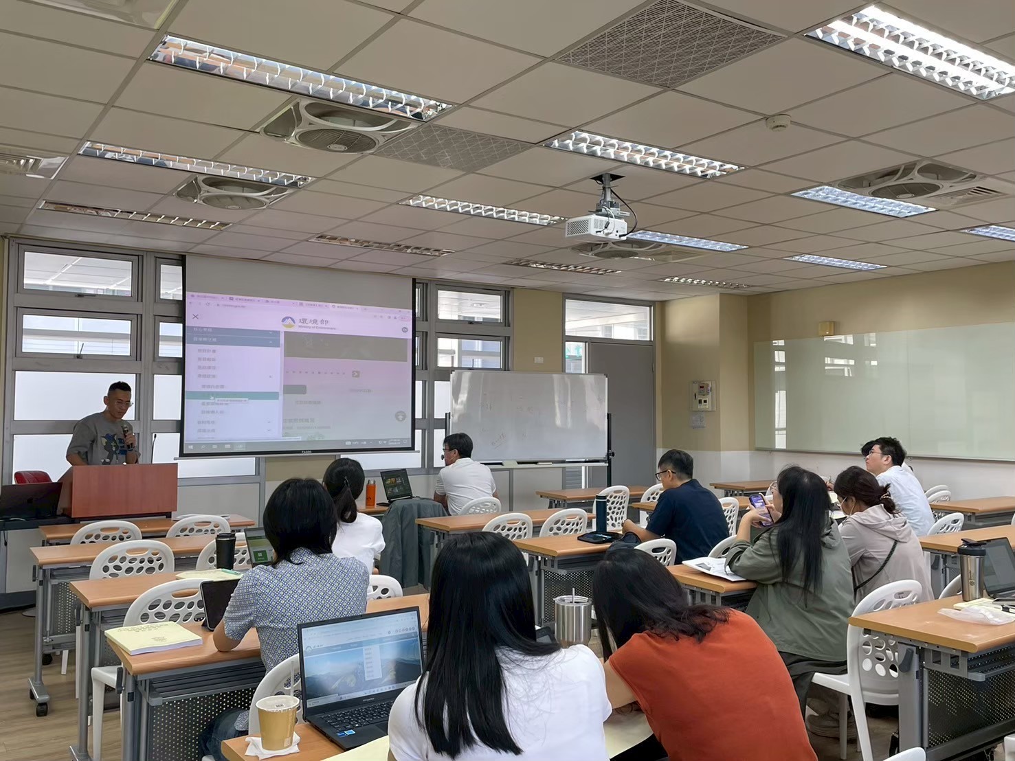 課程設計融合互動講解與實作練習,內容除聚焦於iPAS證照的知識體系外,也延伸至國際氣候政策與國內法規制度的解析,幫助學員從更全面的角度理解碳中和與永續治理的整體脈絡。透過課堂交流與重點整理,學員不僅強化專業知識,更能思考如何將永續思維融入校務運作與教育實踐之中。